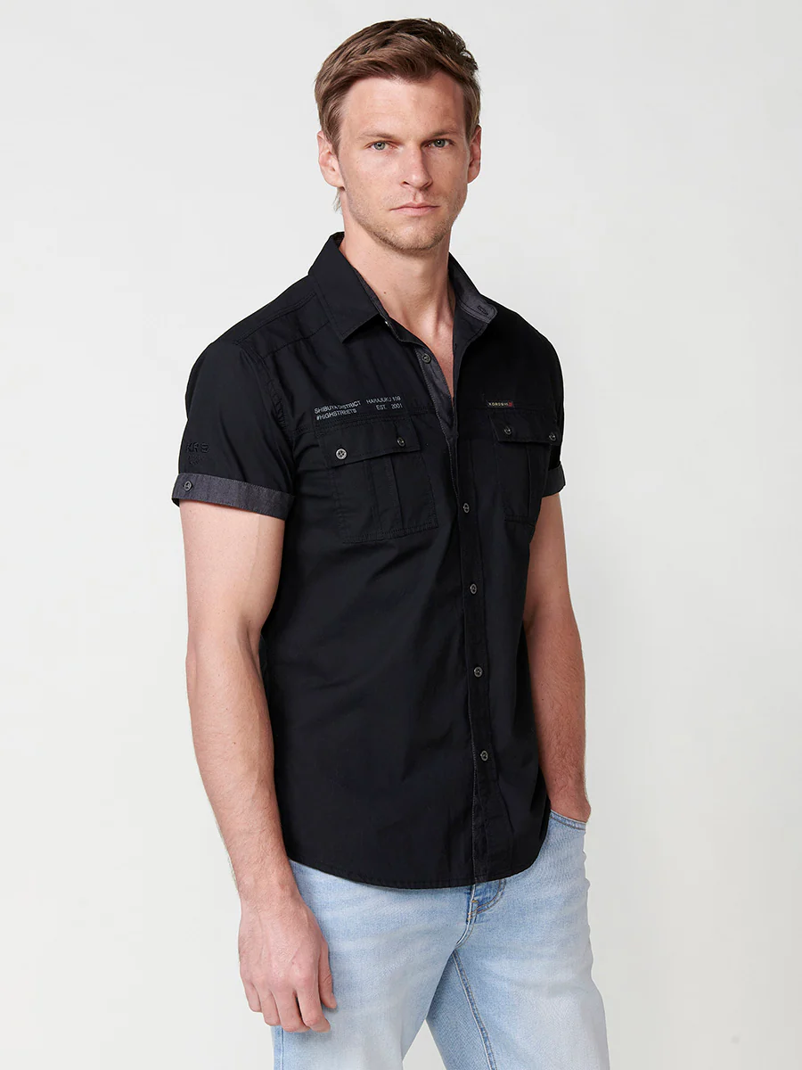 La camisa de manga corta negra es una opción que no puede faltar en tu guardarropa si buscas una prenda versátil, cómoda y con estilo. Perfecta para el hombre que valora tanto la moda como la funcionalidad, esta camisa será tu aliada para crear looks frescos y elegantes. No pierdas la oportunidad de añadirla a tu colección.
