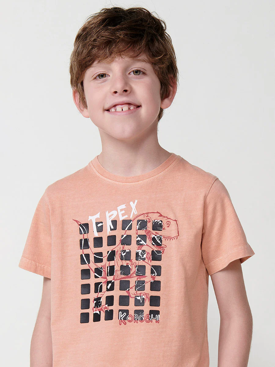 Camiseta de manga corta con estampado frontal en color naranja para niño