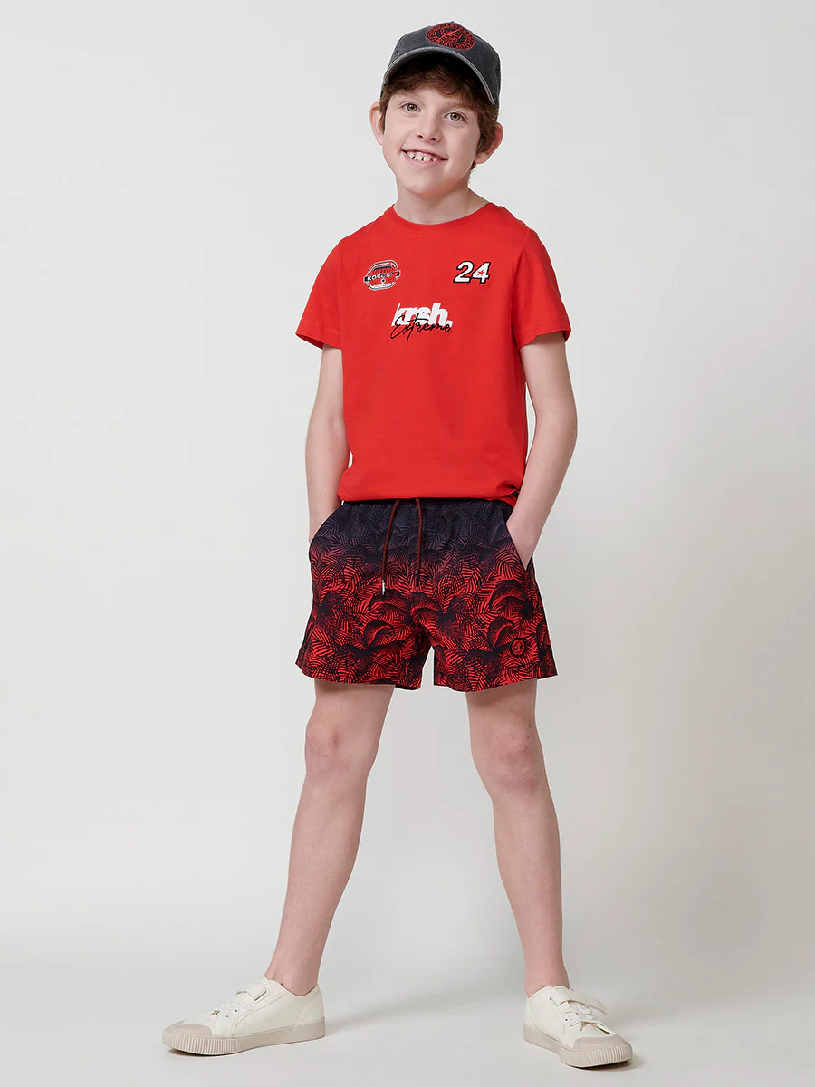 La camiseta de niño de Koröshi es una prenda alegre y con mucha energía, ideal para los pequeños apasionados del motor. En el frontal y la espalda destaca un estampado combinado con bordados de números y coche, aportando textura, dinamismo y originalidad al diseño. Incluye también un pequeño logo estampado en el pecho. Su composición de 95% algodón y 5% elastano la hace ligera, elástica y perfecta para el uso diario.