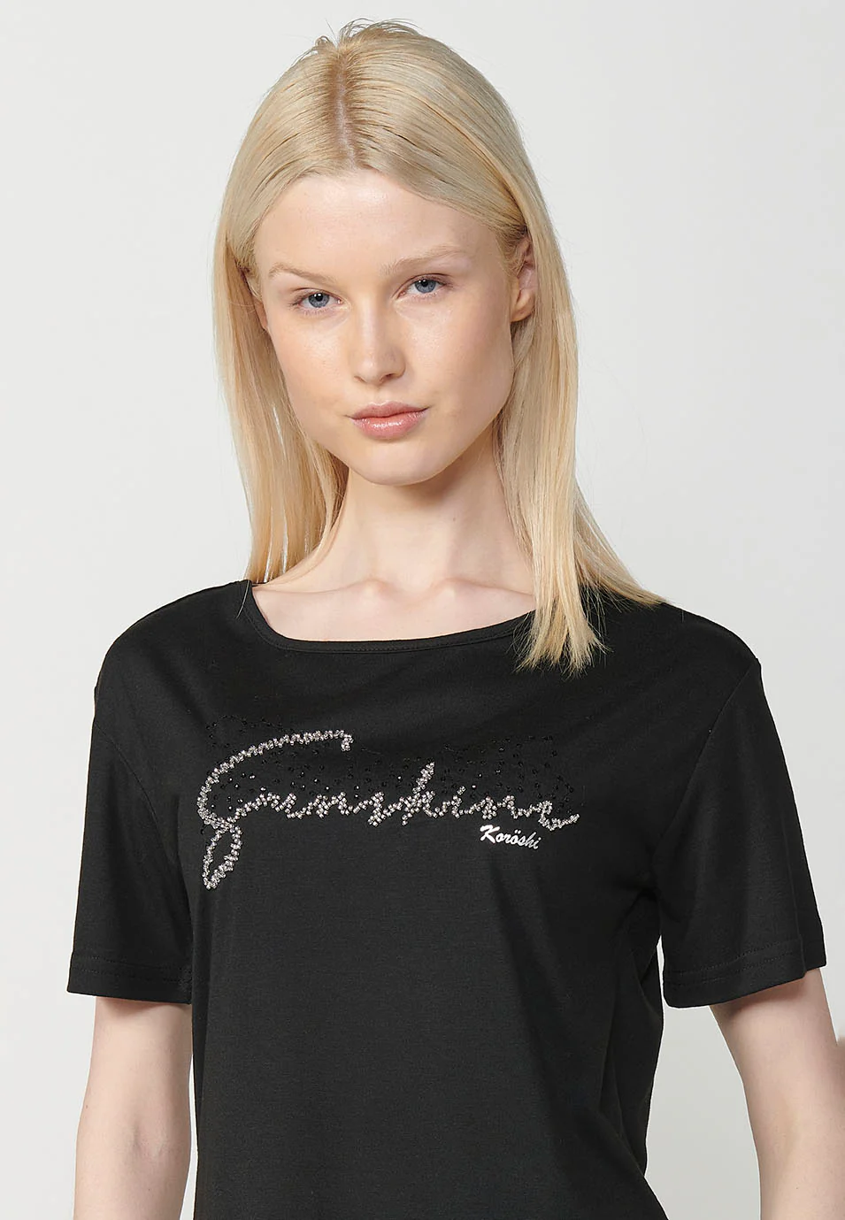 Camiseta mujer manga corta cuello redondo estampado brillo