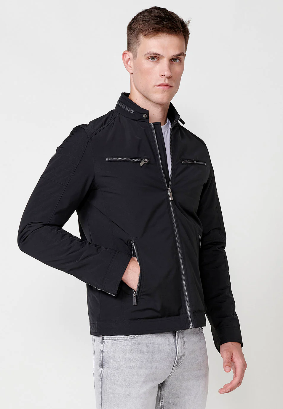 Cazadora con cuello redondo con cierre delantero con cremallera para hombre