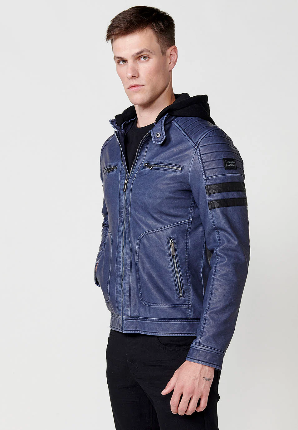 Chaqueta biker efecto piel con capucha desmontable para hombre