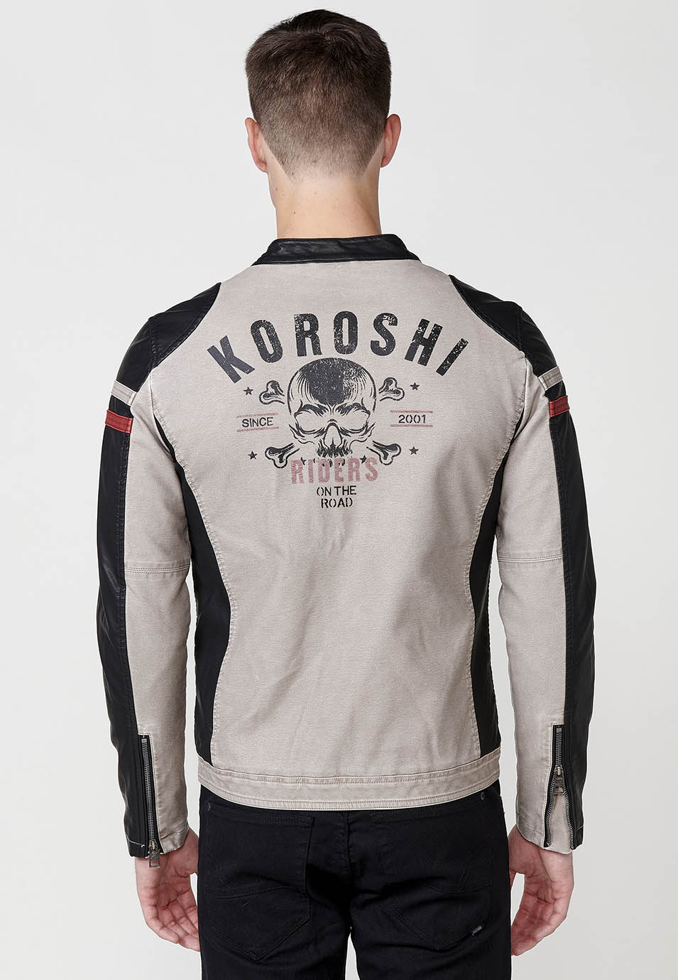 Chaqueta biker efecto piel cuello tira hombre