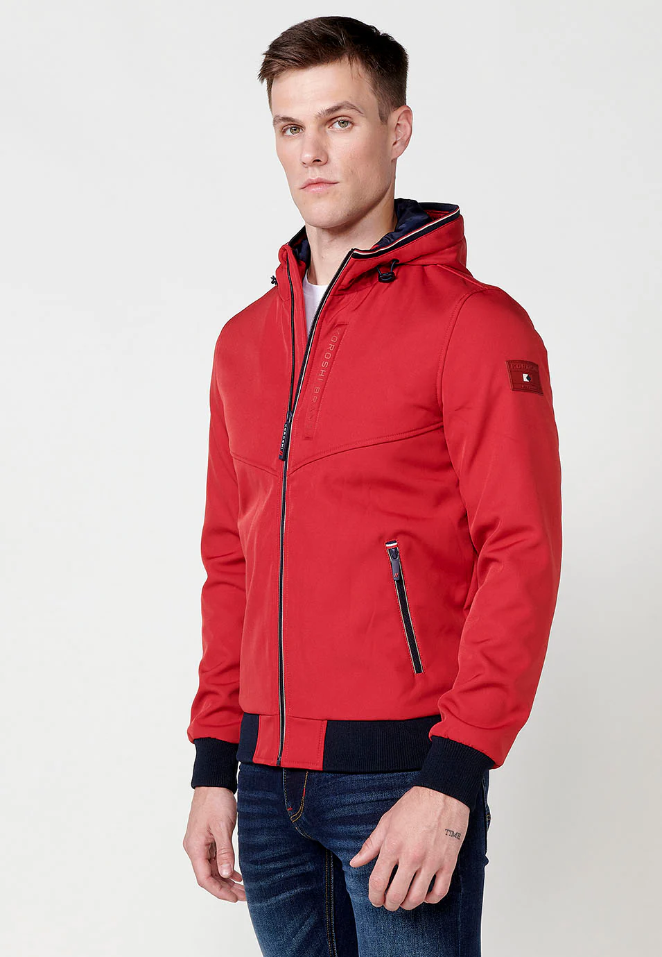 Chaqueta cazadora con cuello con capucha y cierre delantero con cremallera y bolsillos con cremallera para hombre