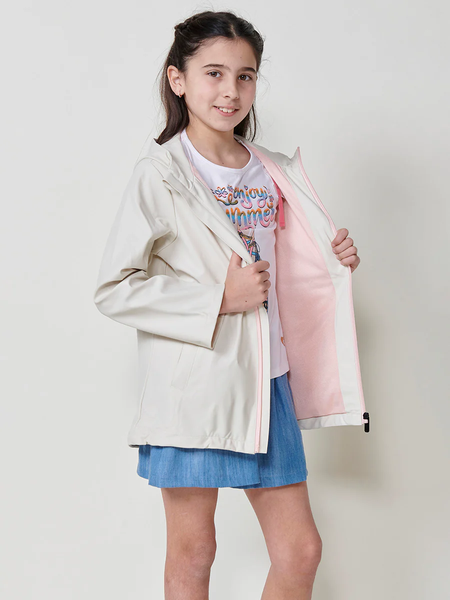 Chaqueta con capucha y cierre delantero con cremallera en color piedra para niña