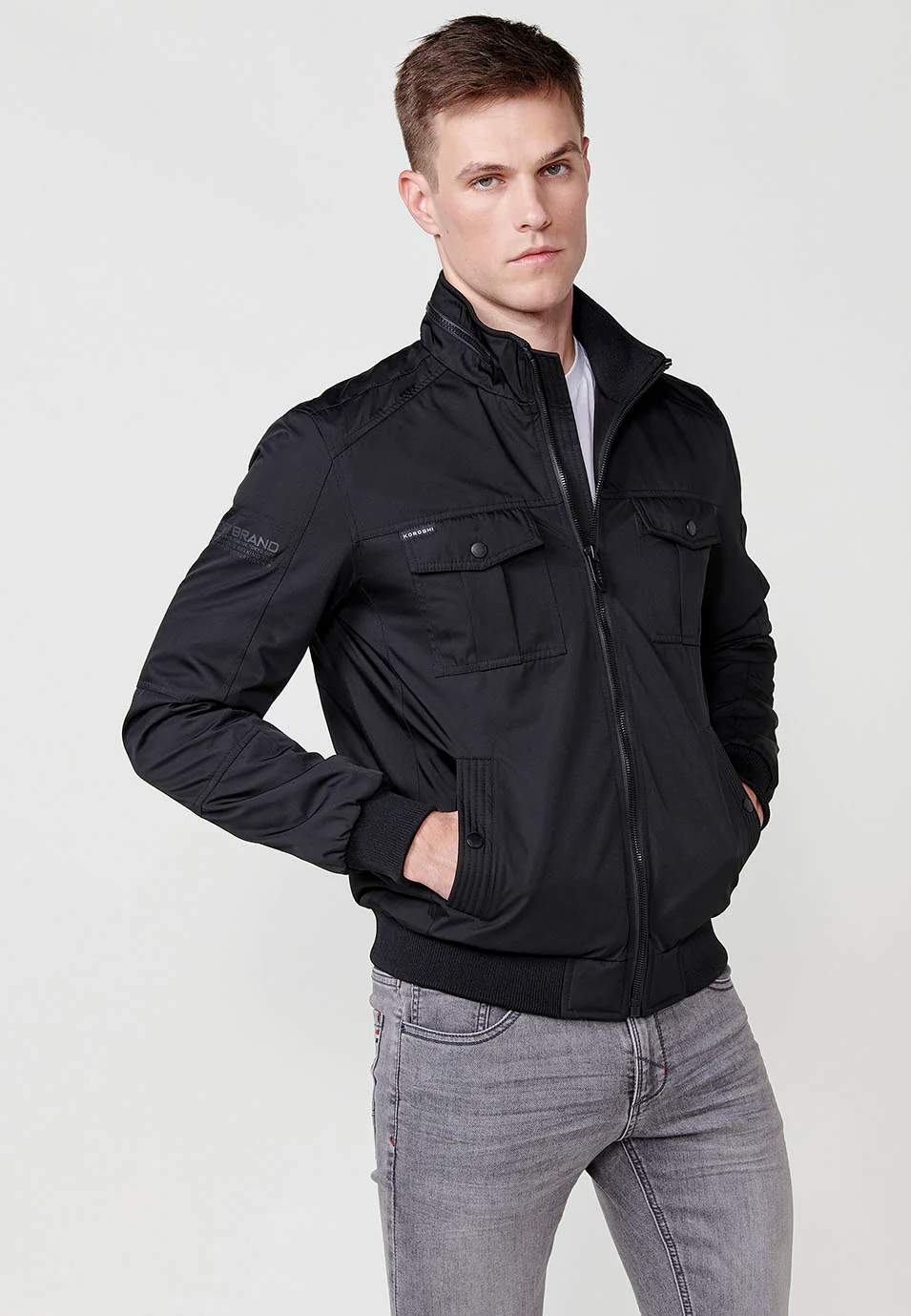 Descubre la chaqueta de cuello alto para hombre en de la reconocida marca Koröshi, una prenda que combina estilo, funcionalidad y comodidad, ideal para el hombre moderno. Diseñada con un cierre delantero con cremallera y bolsillos delanteros con solapas, esta chaqueta destaca por su diseño contemporáneo y práctico, convirtiéndose en una pieza imprescindible para cualquier guardarropa masculino.