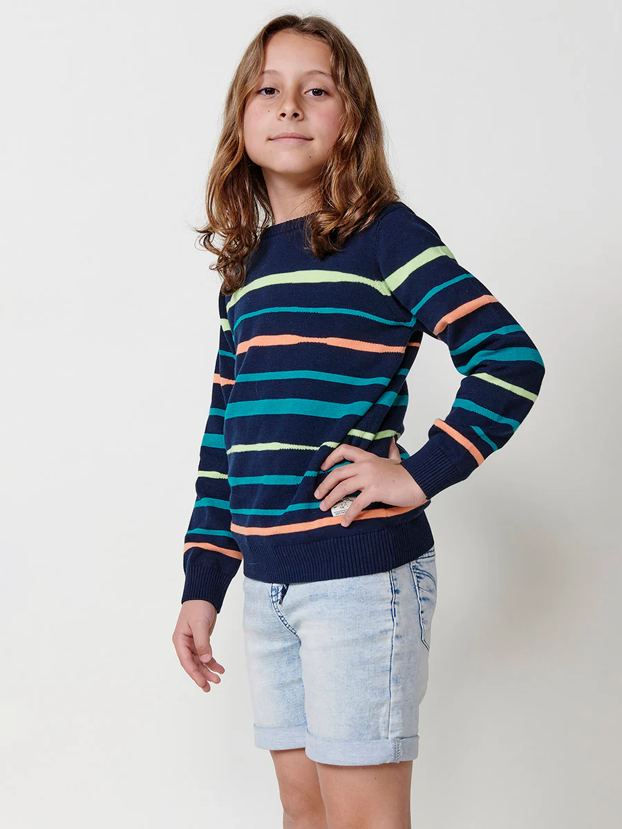 Jersey tricot de algodón con rayas y cuello redondo en azul navy para niño