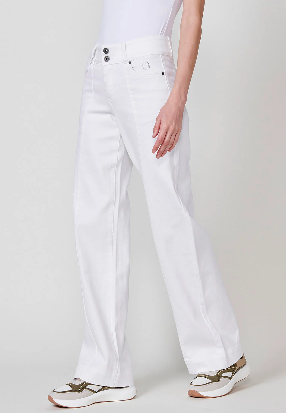 Hazte con el pantalón largo jeans ancho con cierre delantero con cremallera y dos botones de Koröshi y dale a tu estilo un toque fresco y sofisticado. ¡Elige Koröshi y disfruta de una prenda única, cómoda y llena de personalidad!